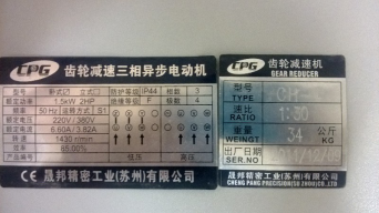 如何識別CPG齒輪減速電機(jī)(馬達(dá))的銘牌
