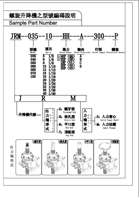 三:臺(tái)灣成大(CHENTA減速機(jī)之螺旋升降機(jī)的組成部分如下