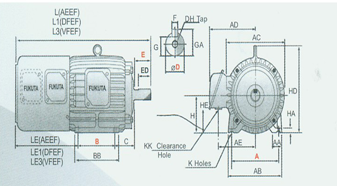 極數:4P、6P、8P。額定輸出:4P:1/4-60HP,6P:1/4-50HP,8P:1/2-30HP