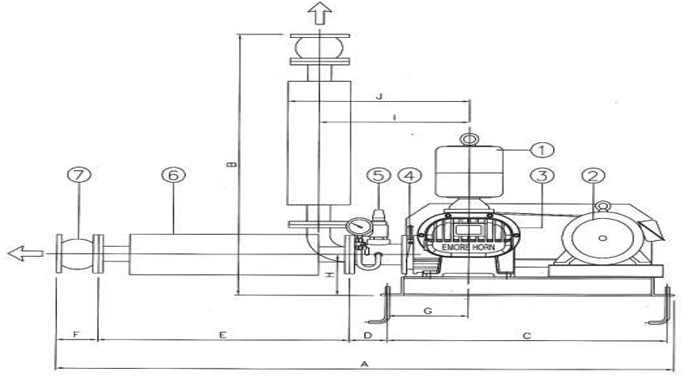 5、魯式鼓風機壓送—壓送型鼓風機吐出空氣之脈動,可更平滑的進行,噪音及振動均可大幅度減低,因此,就小型鼓風機而言,可免加裝出口消音器