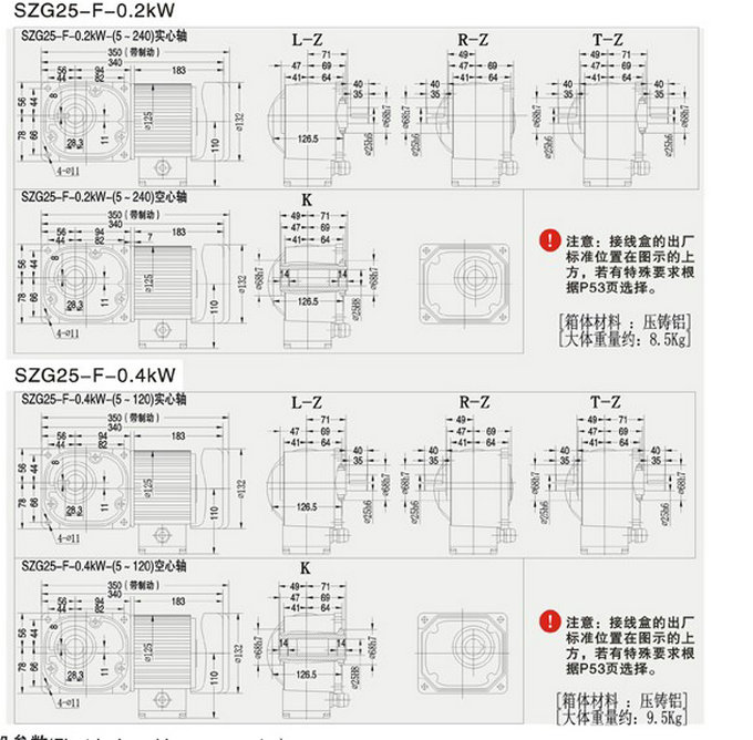 SZG-F直交軸中型25框減速機(jī)圖紙及詳細(xì)參數(shù):